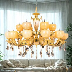 bật với 18 chụp đá vàng tự nhiên kết hợp với các chi tiết pha lê lấp lánh,