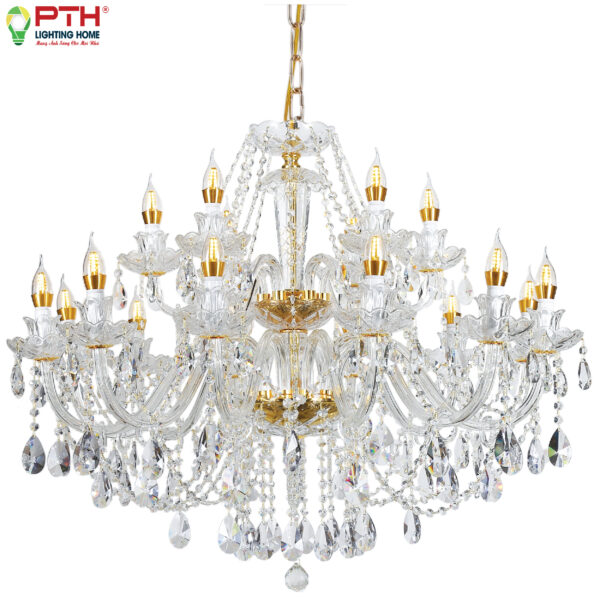 đèn chùm pha lê kiểu nến được thiết kế tinh xảo với những chi tiết mang đậm