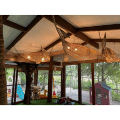 thiết kế nội thất bền vững, đèn con cá mây tre