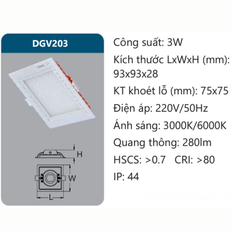 Đèn Led panel vuông 3W DGV203 Duhal