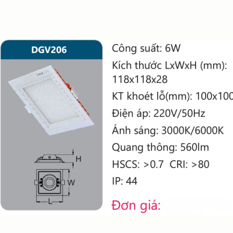 Đèn Led panel vuông 6W DGV206 Duhal