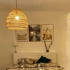 chất liệu mây truyền thống và khung sắt kiên cố tạo nên một tác phẩm ánh sáng