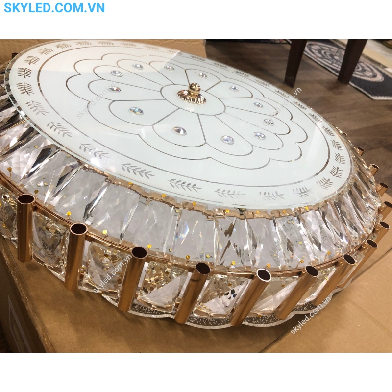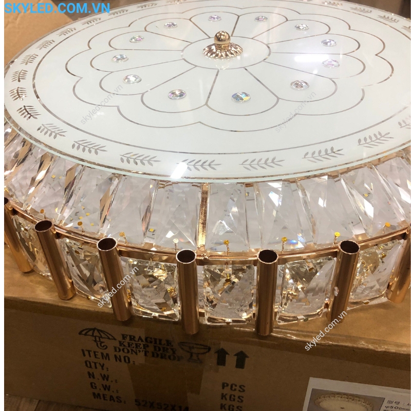 - Kiểu dáng: Đèn ốp trần pha lê trang trí sảnh, phòng khách, phòng ăn
