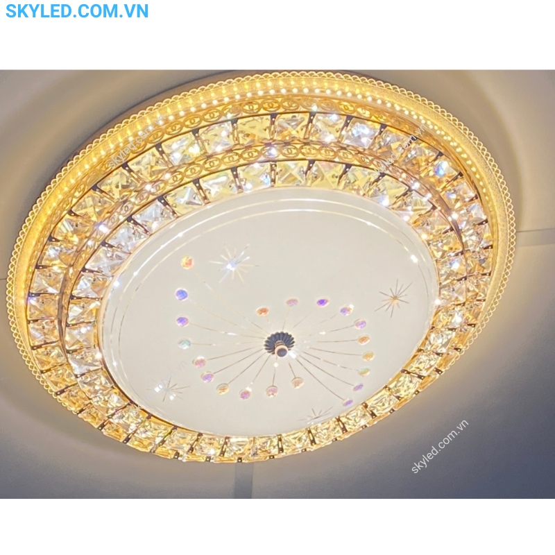 - Kiểu dáng: Đèn ốp trần pha lê trang trí sảnh, phòng khách, phòng ăn