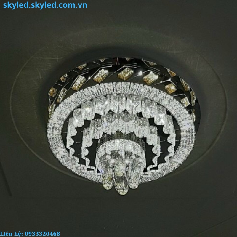 - Kiểu: Đèn ốp trần pha lê trang trí sảnh, phòng khách, phòng ăn