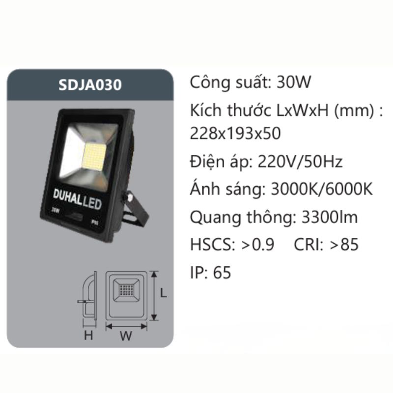 Dưới đây là các thông số kỹ thuật ấn tượng giúp đèn pha Duhal 30W khẳng định vị thế trong phân khúc đèn pha tầm trung: