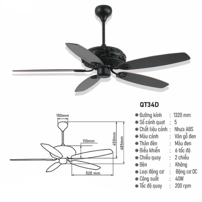 • Mã sản phẩm: Quạt trần QT34B