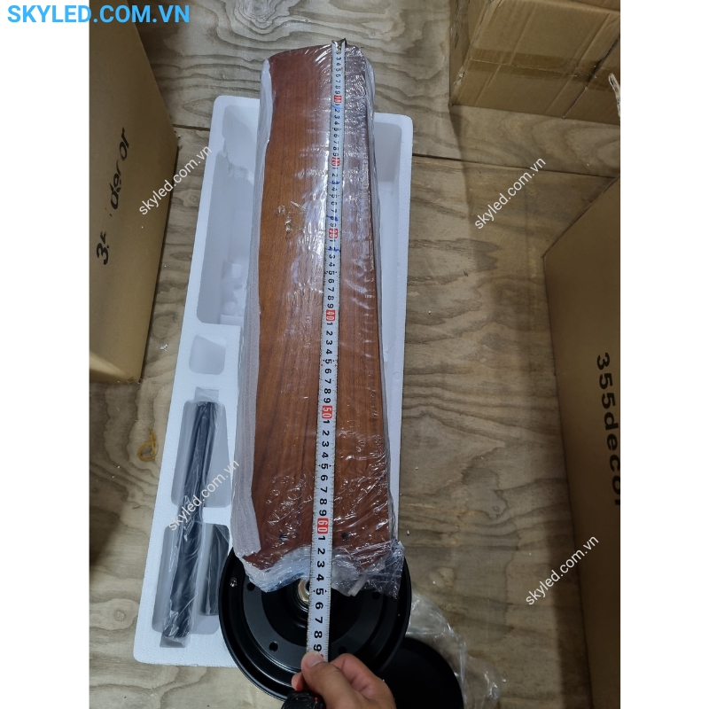 Với kích thước Ø1290, đèn quạt có thể dễ dàng lắp đặt và sử dụng. Thân đèn được làm từ kim loại kết hợp với cánh quạt gỗ, tạo nên sự kết hợp hoàn hảo giữa thẩm mỹ và chức năng.