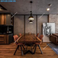 - Ứng dụng của đèn thả cafe TCF63: Đèn TCF63 thường được sử dụng trong trang trí phòng khách, phòng bếp, nhà hàng và cửa hàng. Với kiểu dáng linh hoạt, đèn này có thể treo được trên cả trần thạch cao và bê tông, tạo điểm nhấn độc đáo cho không gian sống.