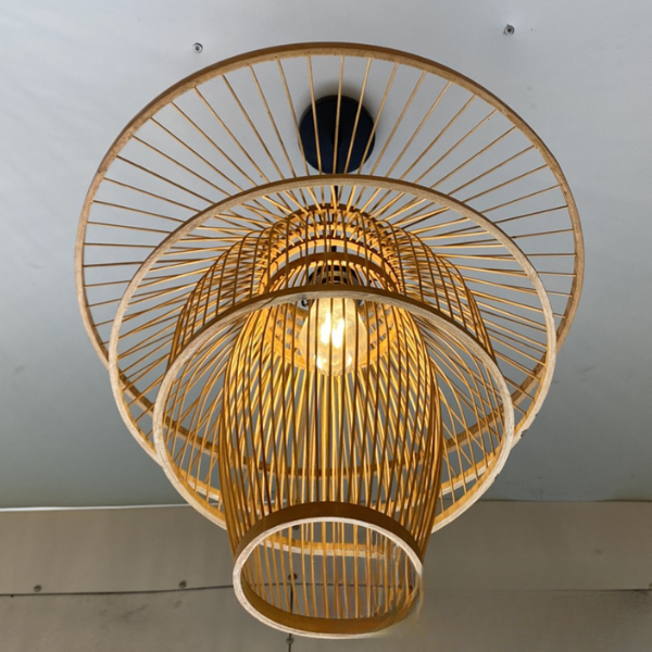 Đèn thả mây tre đan hình cây nấm nhiều tầng