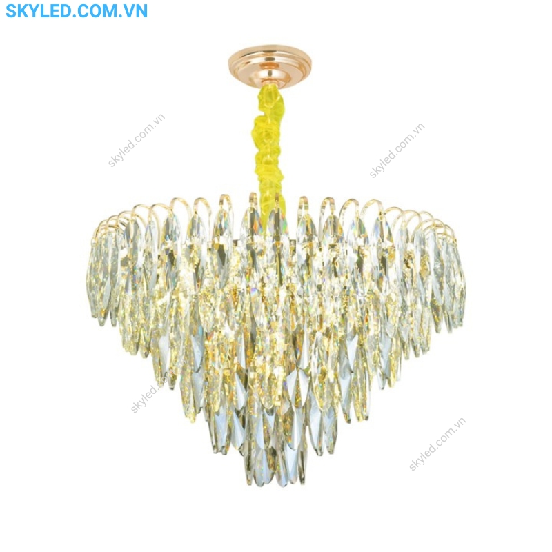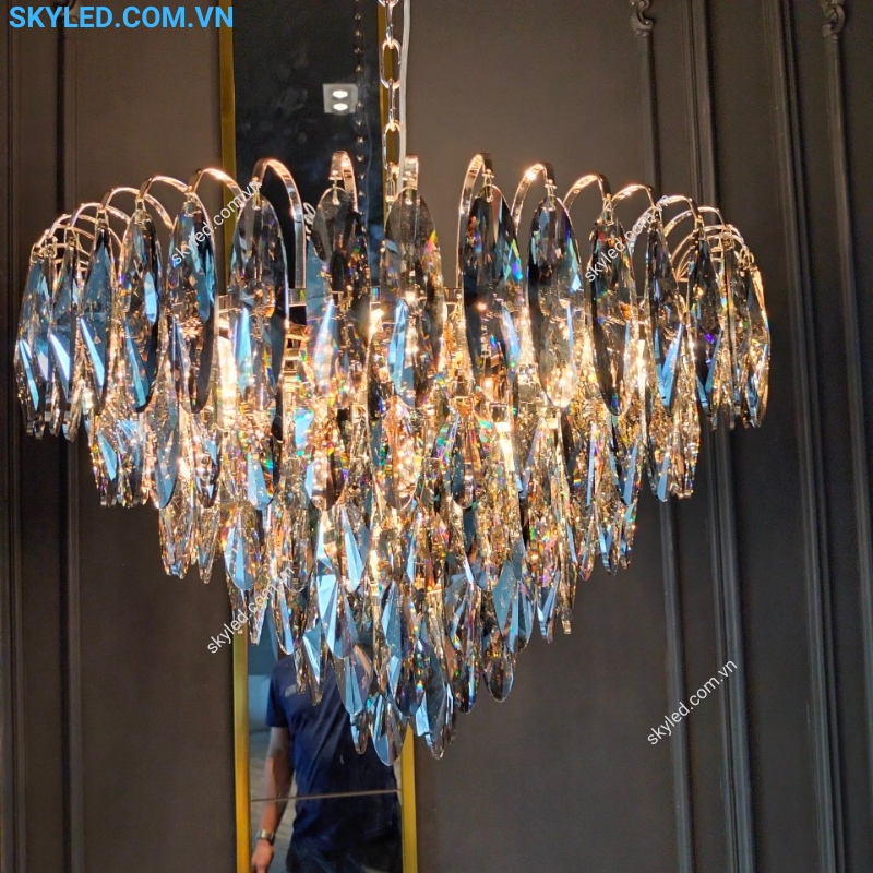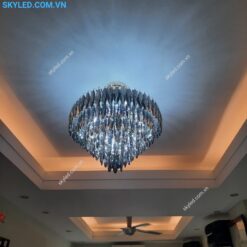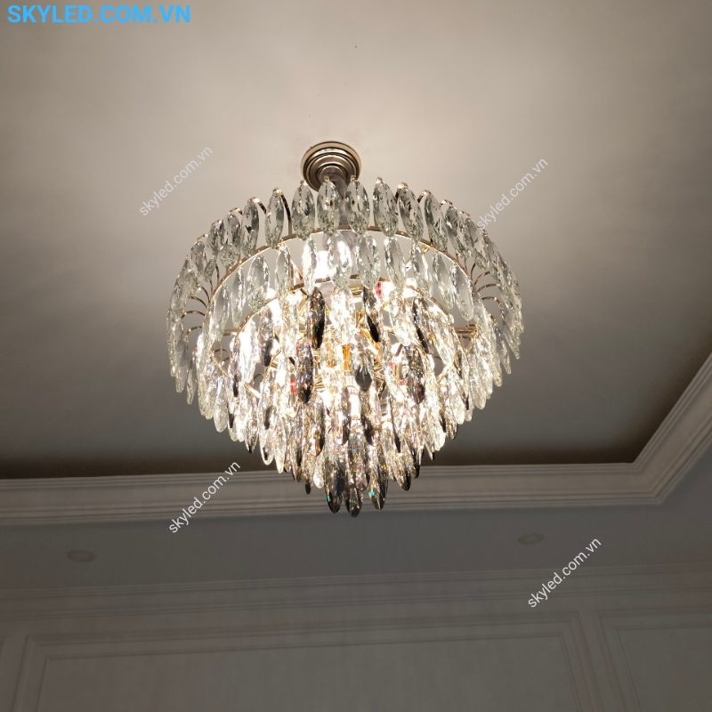 Đèn thả trang trí này đặc biệt thích hợp với những không gian cao cấp như phòng khách, phòng ăn, phòng ngủ hay những khu vực sang trọng khác như khách sạn hay nhà hàng. Sự kết hợp giữa kim loại và pha lê không chỉ mang lại tính thẩm mỹ cao mà còn đảm bảo độ bền và tuổi thọ dài lâu cho sản phẩm.