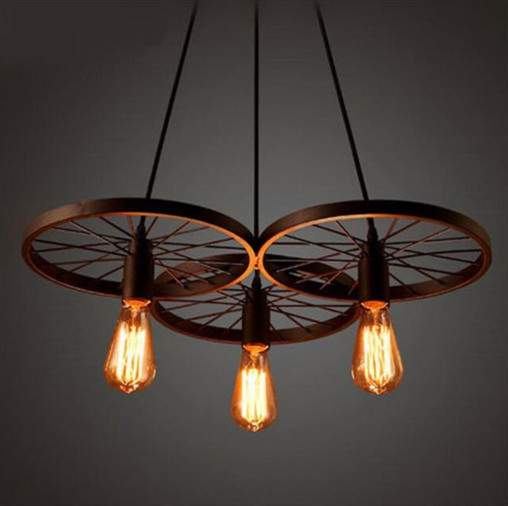 một mẫu đèn độc đáo cho quán café của mình và đèn thả sắt 3 bánh xe là lựa