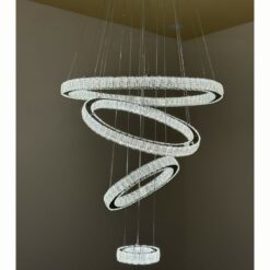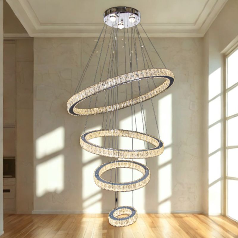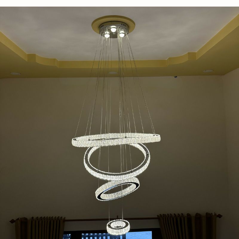 tác phẩm nghệ thuật ánh sáng với thiết kế đặc trưng gồm 4 vòng tròn pha lê có