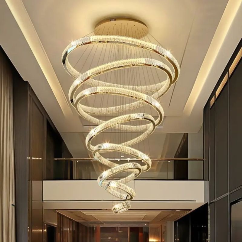 Những vòng pha lê lấp lánh phản chiếu ánh sáng tạo hiệu ứng visual stunning,