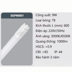 của đèn tube LED 0m6 9W SGPM801, mời quý khách