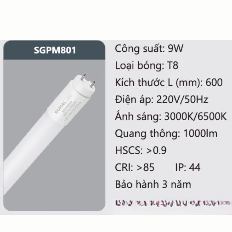 Đèn Tuýp LED 0m6 9W SGPM801 Duhal: Giải Pháp Chiếu Sáng Tiết Kiệm Và Hiện Đại