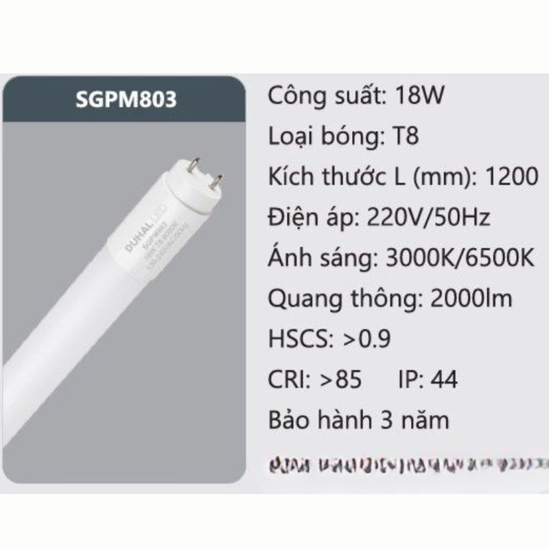 Đèn Tuýp LED 1m2 18W SGPM803 Duhal: Giải Pháp Chiếu Sáng Tiết Kiệm, Bền Bỉ Cho Mọi Không Gian