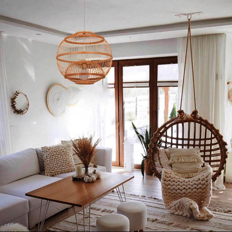tre tự nhiên và kỹ thuật đan thủ công 2 lớp tạo nên một tác phẩm ánh sáng đầy