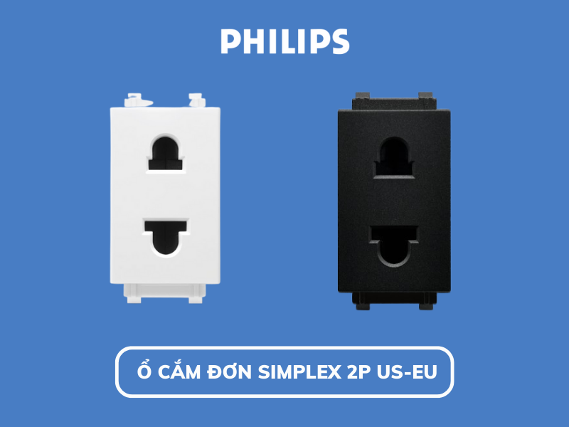 Ổ cắm LeafStyle Simplex 2P US-EU Philips tương thích với hầu hết
