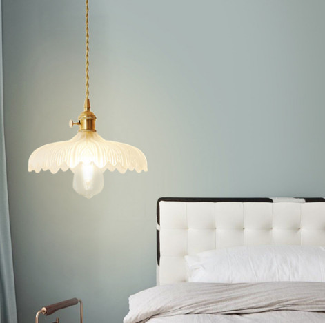 Thay vì đèn ngủ truyền thống, đèn thả thủy tinh hoa